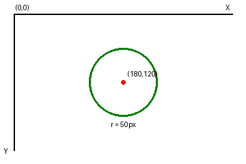 circle | (x,y) defines the coordinates of the center of the circle and r defines the radius. |